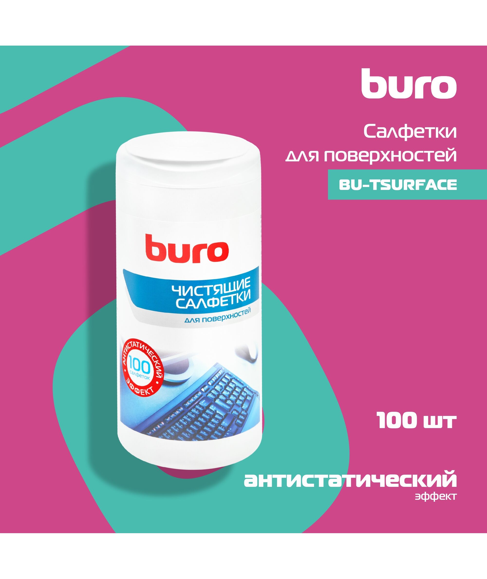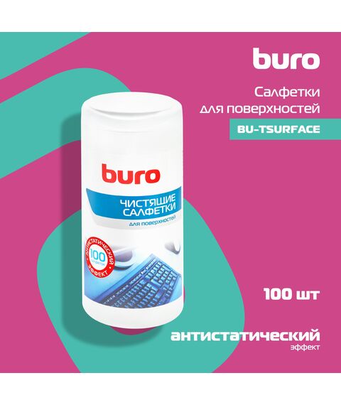 Салфетки BURO BU-TSURFACE для поверхностей туба 100шт влажных
