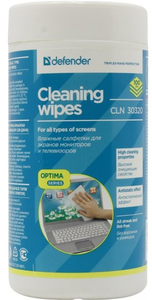 Влажные чистящие салфетки Defender CLN30320 в пластиковой тубе для экранов всех типов (100шт)