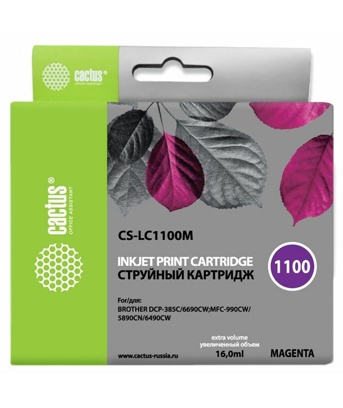 Картридж струйный Cactus CS-LC1100M пурпурный (16мл) для Brother DCP-385c/6690cw/MFC-990/5890/5895/6490