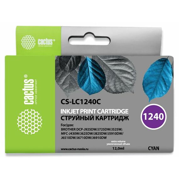 Картридж струйный Cactus CS-LC1240C голубой (12мл) для Brother MFC-J6510/6910DW