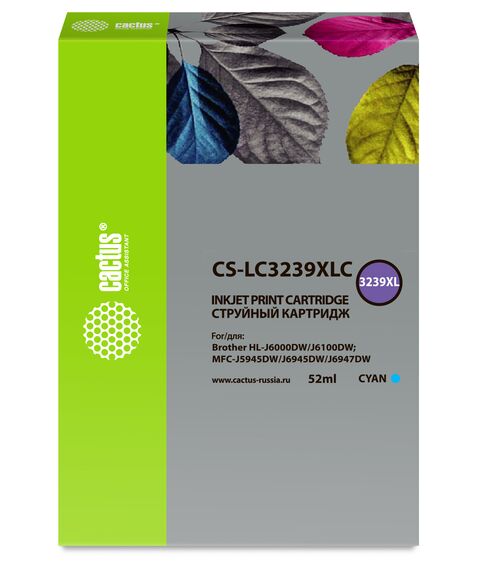 Картридж струйный Cactus CS-LC3239XLC голубой (52мл) для Brother HL-J6000DW/J6100DW