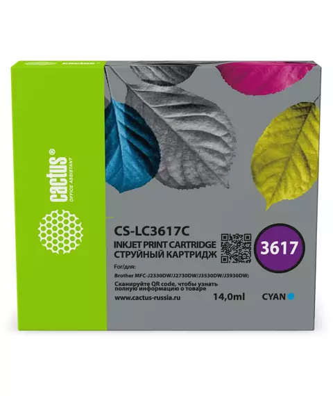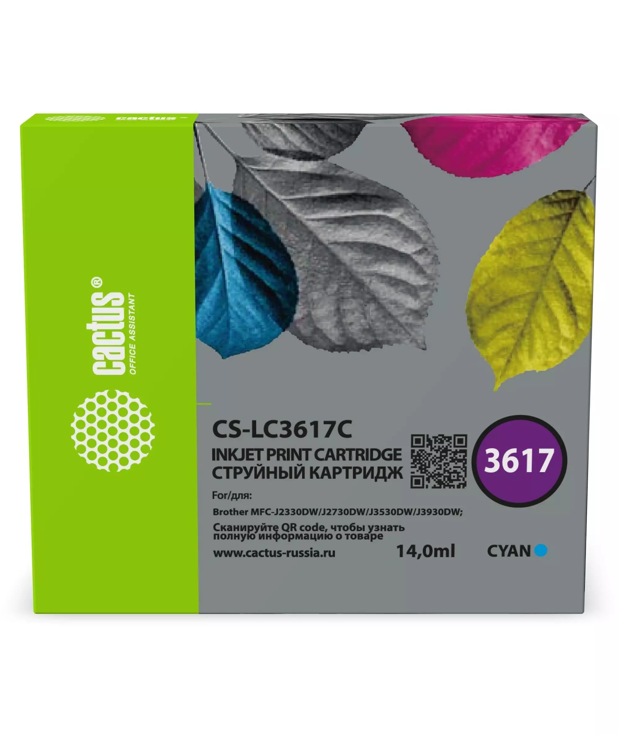 Картридж струйный Cactus CS-LC3617C голубой (14мл) для Brother MFC-J2330DW/J2730DW/J3530DW/J3930DW