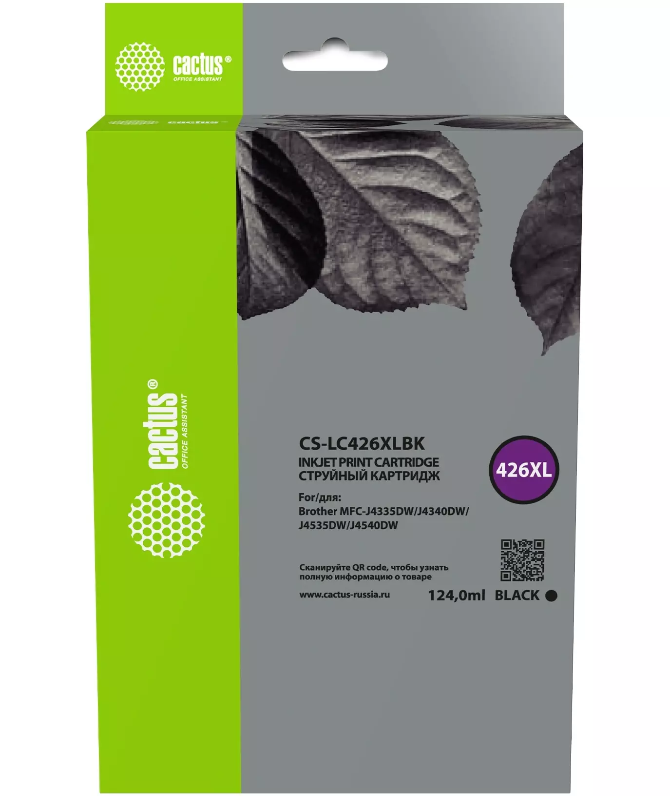Картридж струйный черный пигментный Cactus CS-LC426XLBK черный пигментный (124мл) для Brother MFC-J4335DW/J4340DW/J4535DW/J4540DW с чипом
