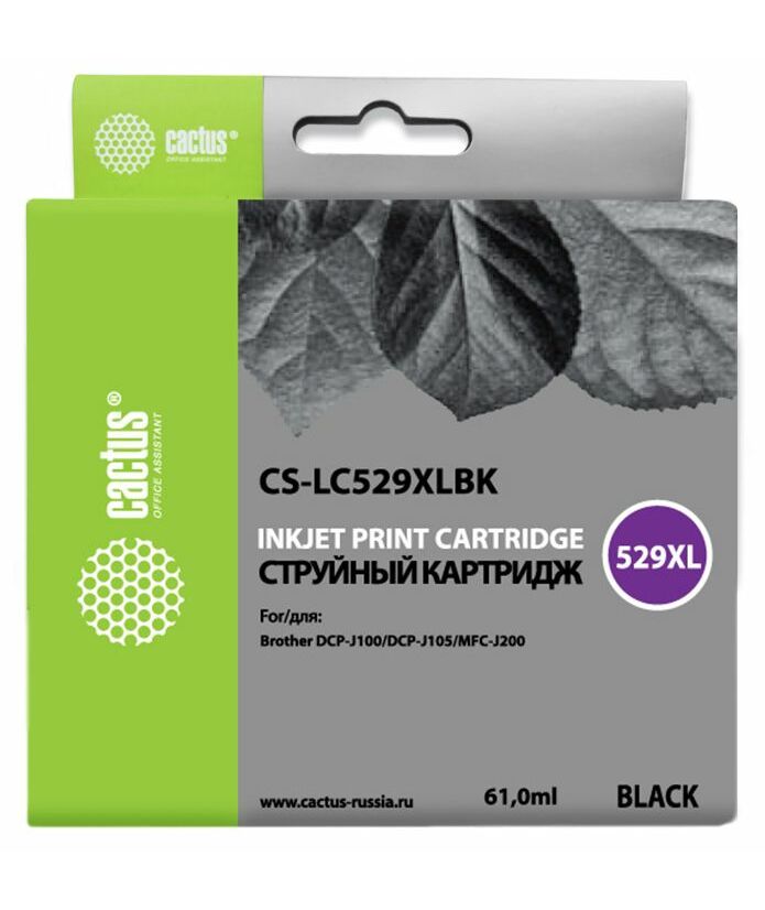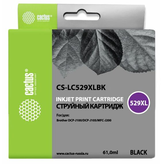 Картридж струйный Cactus CS-LC529XLBK черный (61мл) для Brother DCP-J100/J105/J200