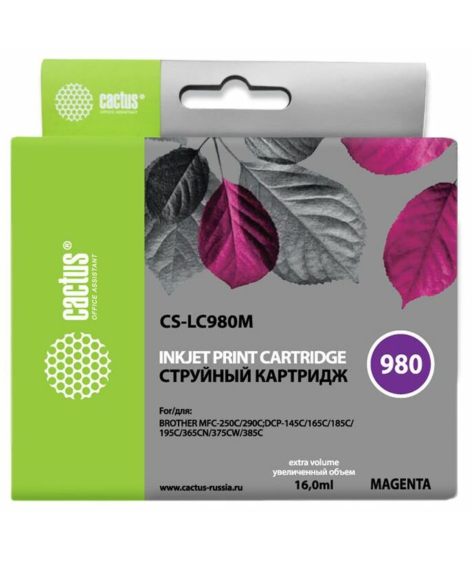 Картридж струйный Cactus CS-LC980M пурпурный (16мл) для Brother DCP-145C/165C/MFC-250C/290C