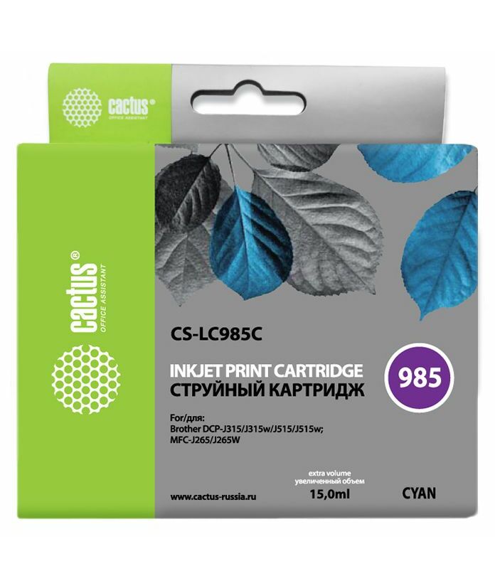 Картридж струйный Cactus CS-LC985C голубой (15мл) для Brother DCPJ315W/DCPJ515W/MFCJ265W