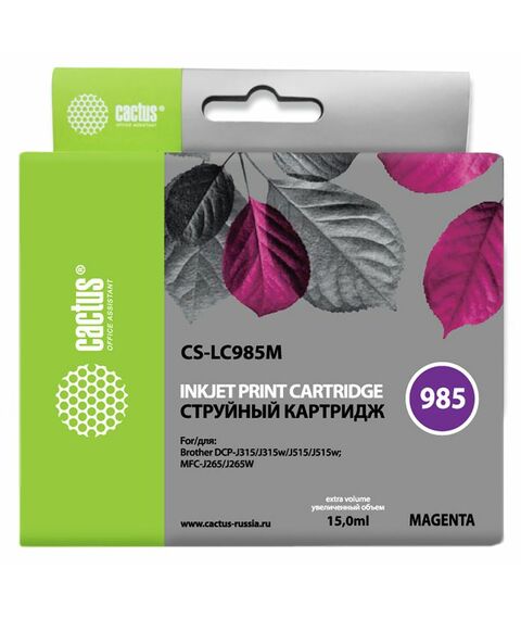 Картридж струйный Cactus CS-LC985M пурпурный (15мл) для Brother DCPJ315W/DCPJ515W/MFCJ265W
