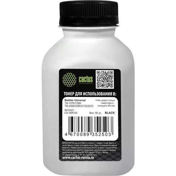 Тонер Cactus CS-TBR-50 черный флакон 50гр. для принтера Brother Universal TN-1075/1095/TN-2080/2085/2135/2235