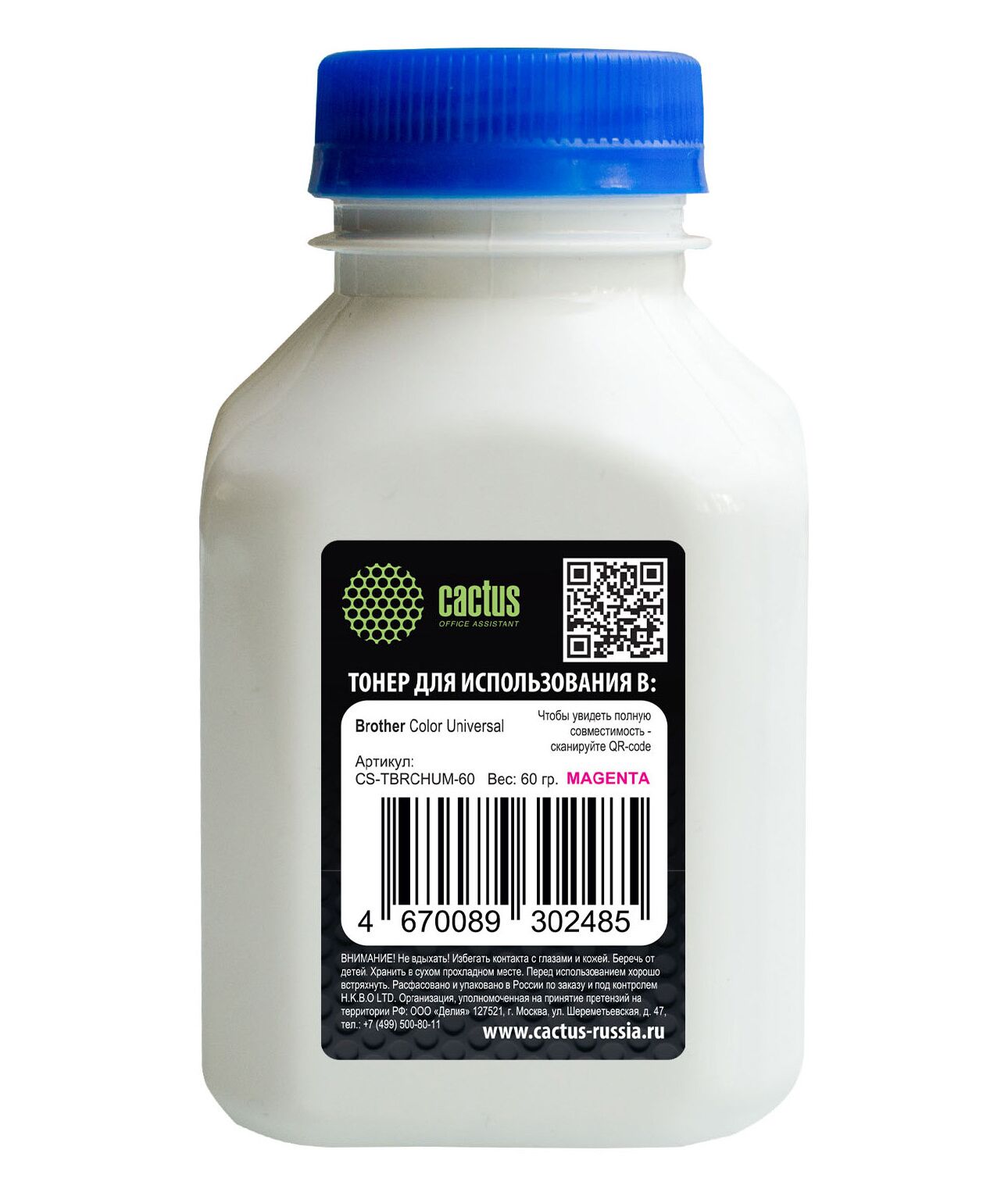 Тонер Cactus CS-TBRCHUM-60 пурпурный, флакон 60гр., для принтера Brother Color Universal TN-230/241/213/217/320/421