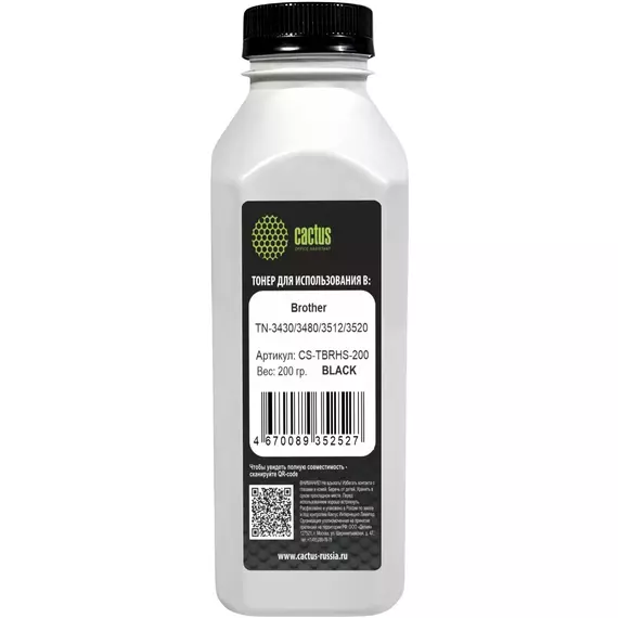 Тонер Cactus CS-TBRHS-200 черный флакон 200гр для принтера Brother TN-3430/3480/3512/3520