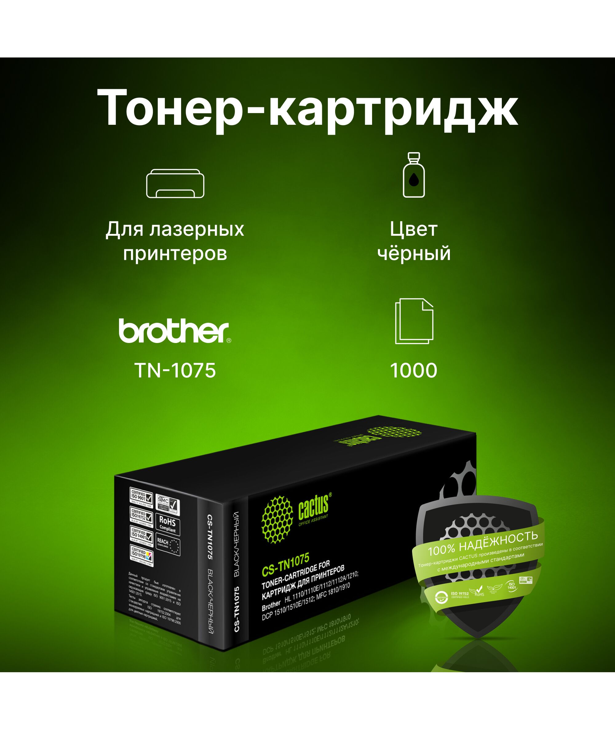 Картридж лазерный черный Cactus CS-TN1075 TN-1075 черный (1000стр.) для Brother HL-1110/1112/1510/1512/1810/1815