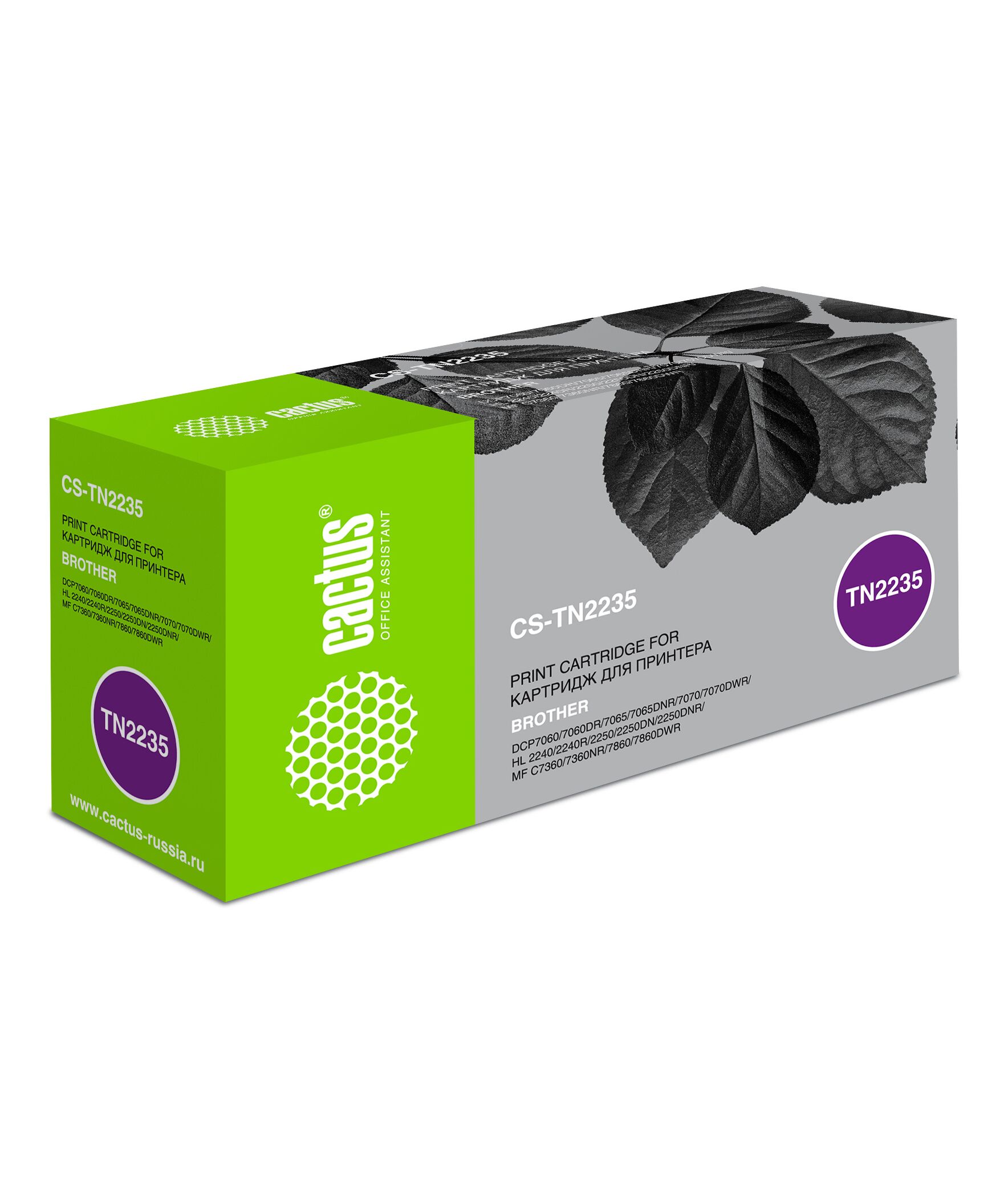 Картридж лазерный черный Cactus CS-TN2235 TN-2235, черный, 1200 стр., для DCP7060/7060DR/7065/7065DNR/7070/7070DWR/HL-2240/2240R/2250/2250DN/2250DNR/MFC-7360/7360NR/7860/7860DWR