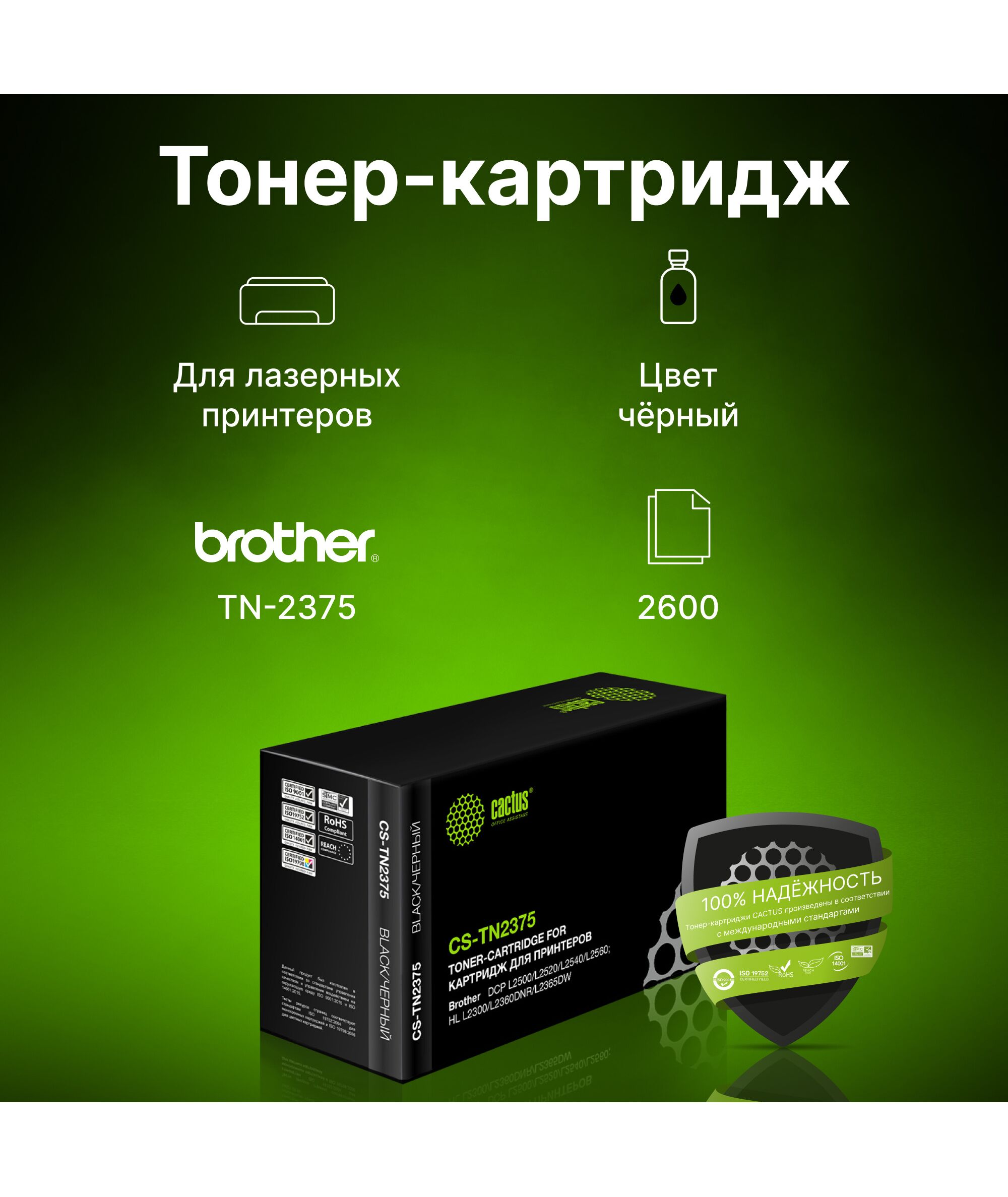 Картридж лазерный Cactus CS-TN2375 TN-2375 черный (2600стр.) для Brother DCP L2500/L2520/L2540/L2560