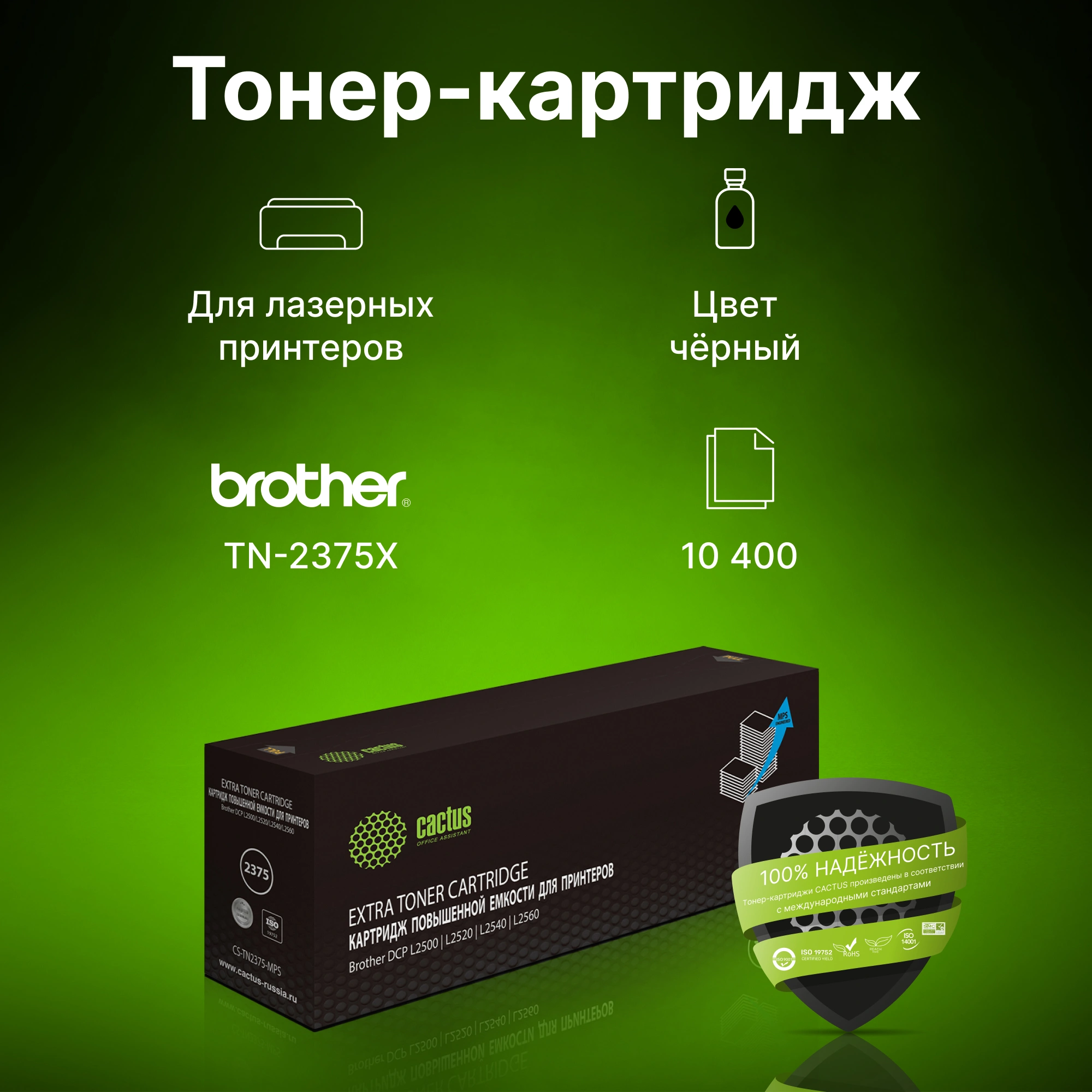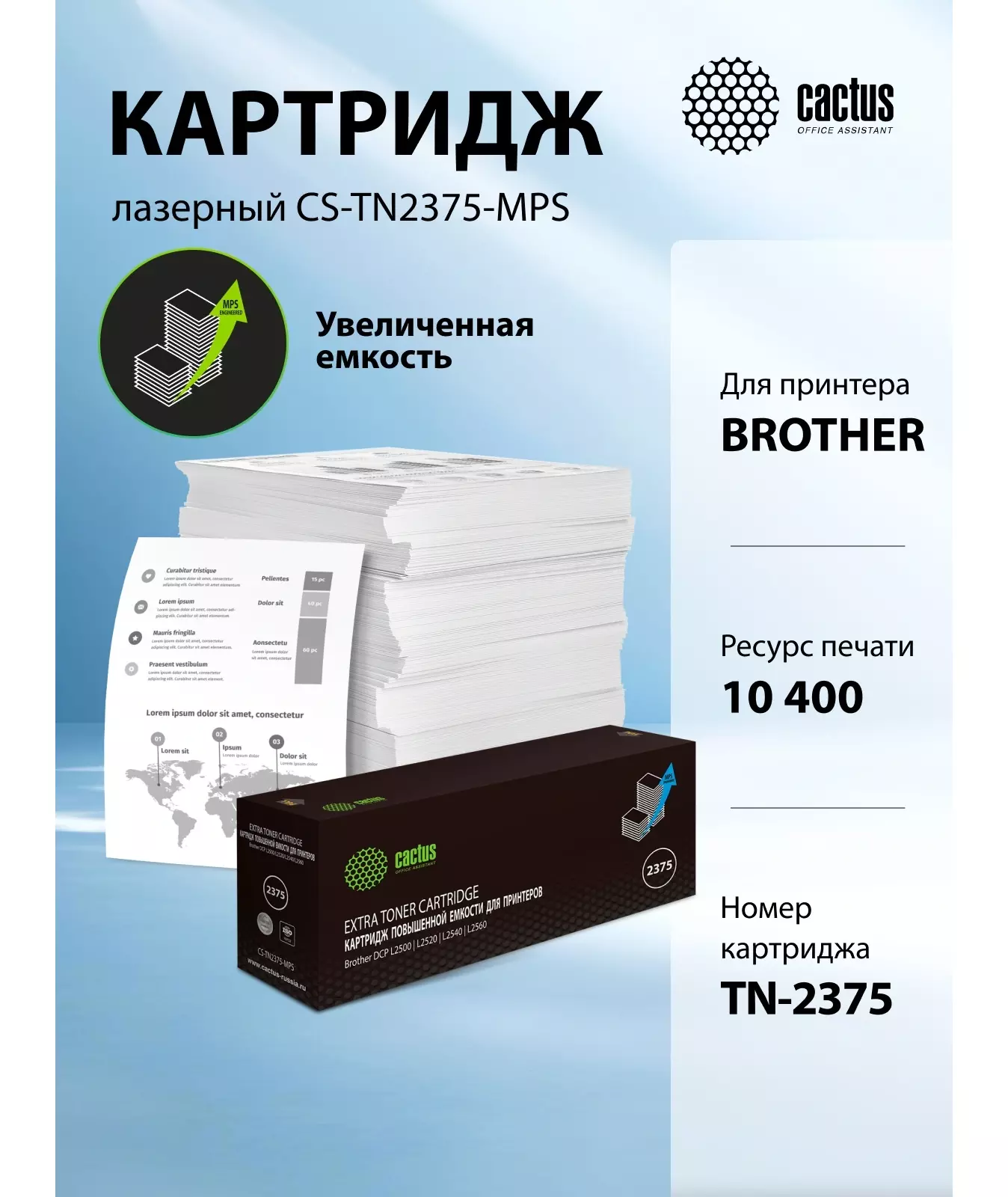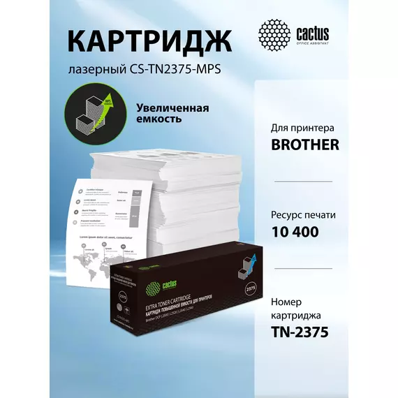 Картридж лазерный Cactus CS-TN2375-MPS TN-2375X черный (10400стр.) для Brother DCP L2500/L2520/L2540/L2560