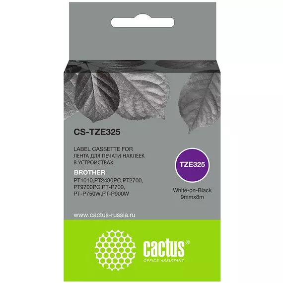Картридж ленточный Cactus CS-TZE325 белый на черном 9x8 для Brother 1010/1280/1280VP/2700VP