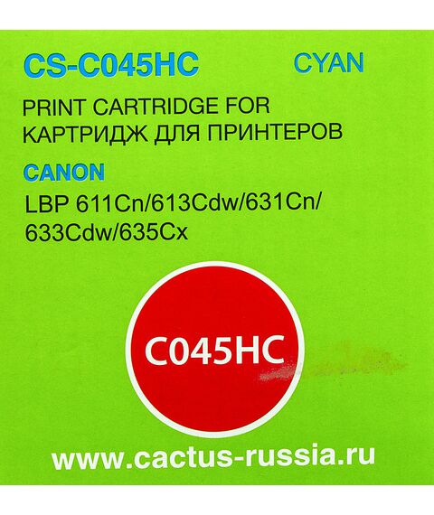 Картридж лазерный Cactus CS-C045HC голубой (2200стр.) для Canon LBP 611Cn/613Cdw/631Cn/633Cdw/635Cx