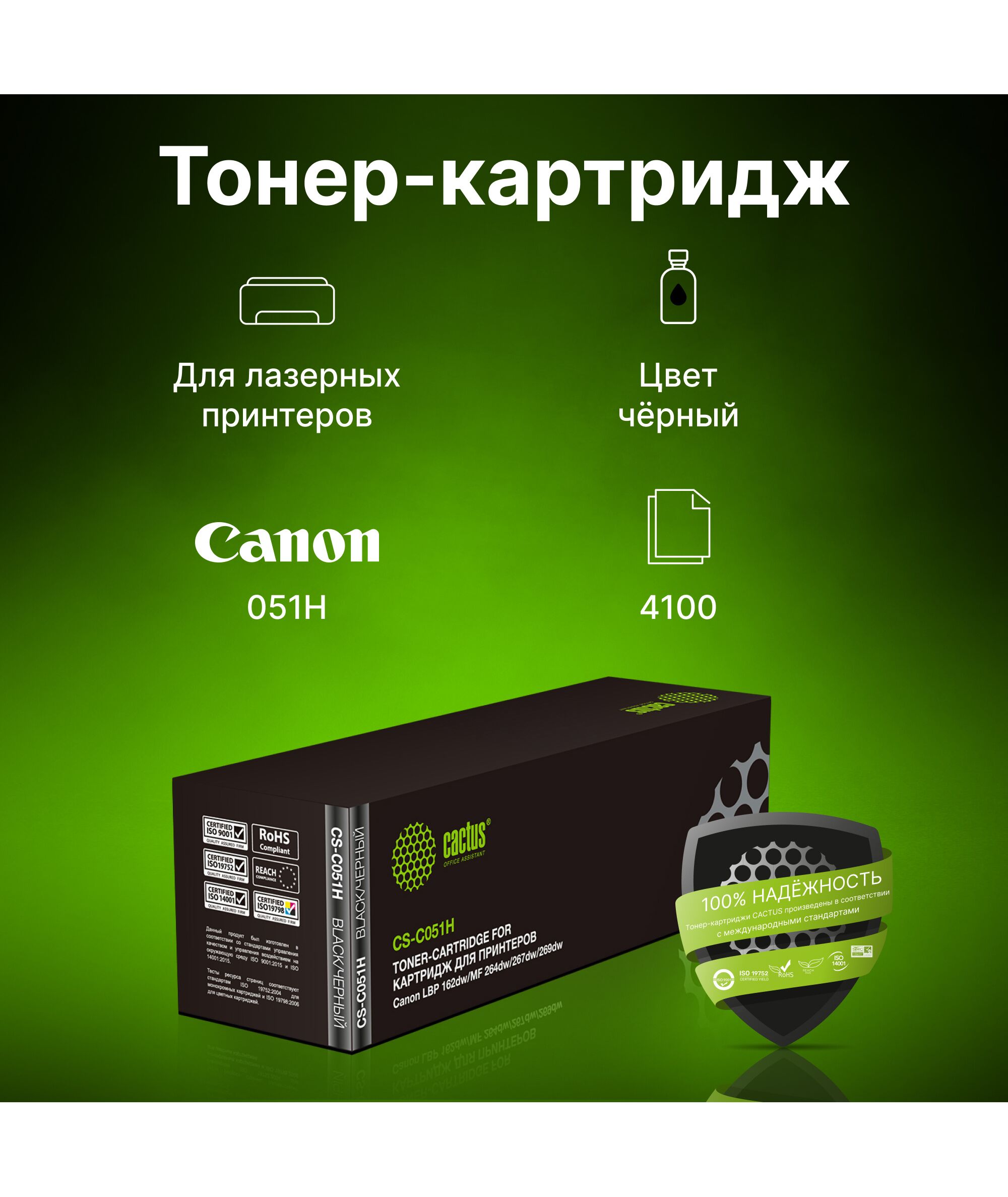 Картридж лазерный Cactus CS-C051H черный (4100стр.) для Canon LBP 162dw/MF 264dw/267dw/269dw