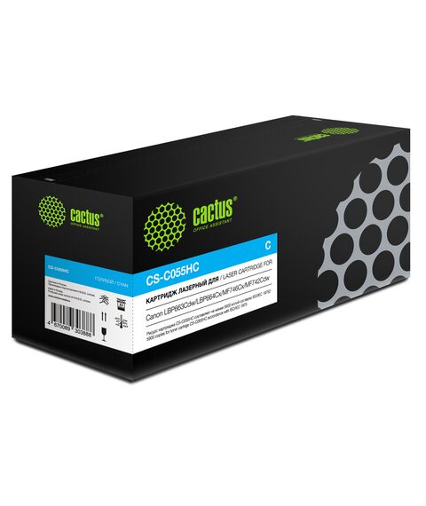 Картридж лазерный Cactus CS-C055HC голубой (5900стр.) для Canon LBP663Cdw/LBP664Cx/MF746Cx/MF742Cdw/MF744Cdw