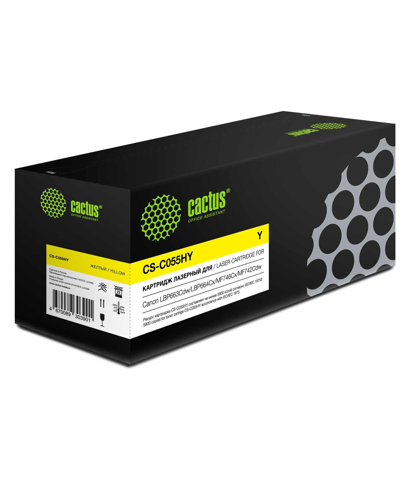 Картридж лазерный Cactus CS-C055HY желтый (5900стр.) для Canon LBP663Cdw/LBP664Cx/MF746Cx/MF742Cdw/MF744Cdw