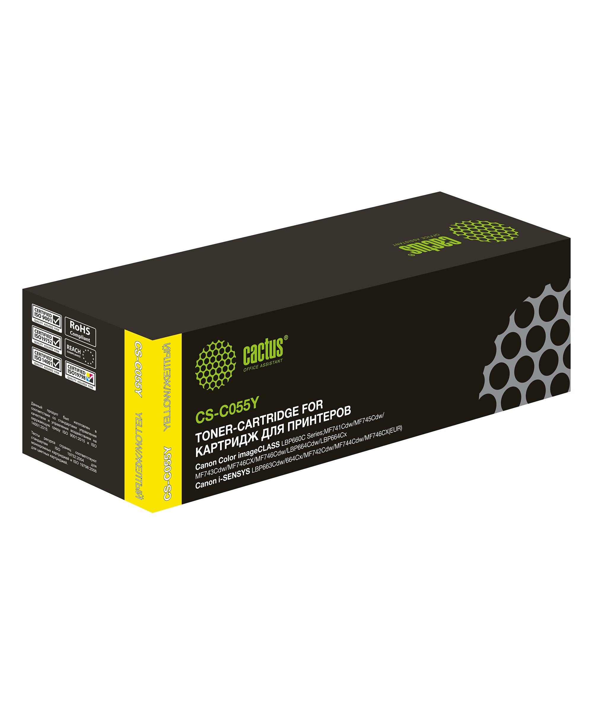 Картридж лазерный Cactus CS-C055Y 055 Y желтый (2100стр.) для LBP663Cdw, LBP664Cx, MF746Cx, MF742Cdw, MF744Cdw