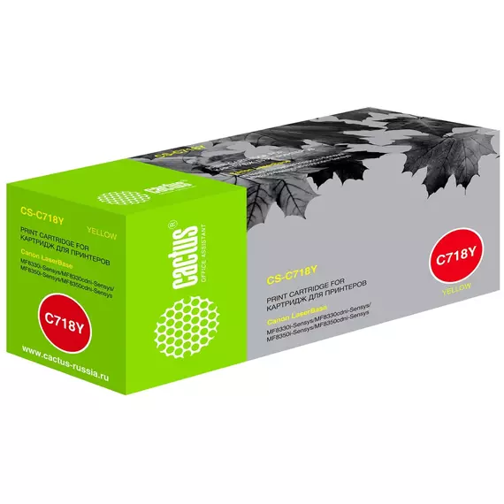 Картридж лазерный Cactus CS-C718Y аналог 718Y для Canon i-Sensys MF8330/MF8340/MF8350/MF8360/ MF8540/MF8580/LBP7200/7210/7660/7680, желтый (2900стр.)