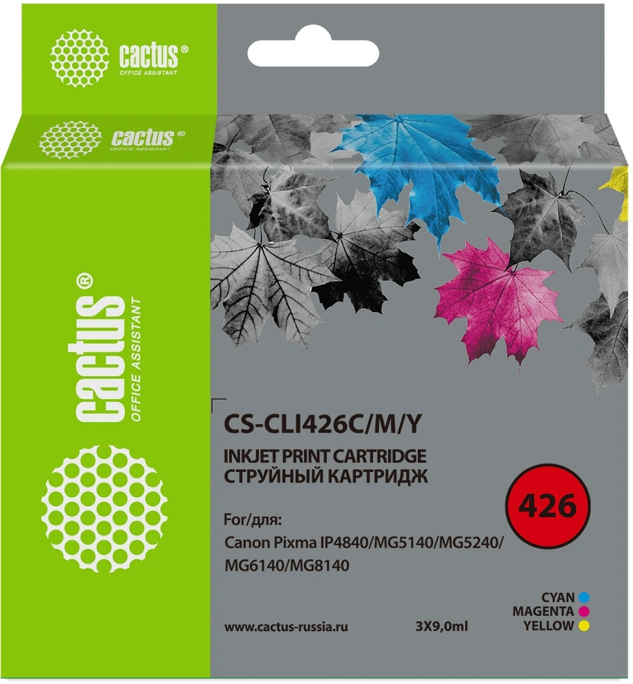 Картридж струйный набор Cactus CS-CLI426C/M/Y голубой/пурпурный/желтый 27мл для Canon MG5140/5240/6140/8140/MX884 с чипом