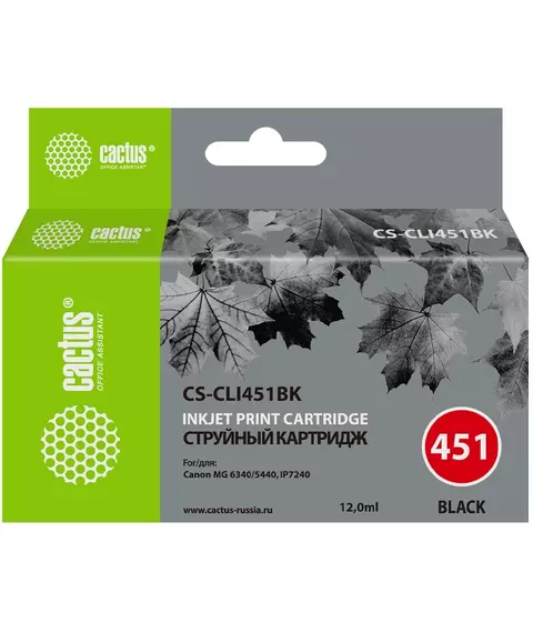 Картридж струйный Cactus CS-CLI451BK черный 12мл для Canon MG6340/5440/IP7240 с чипом