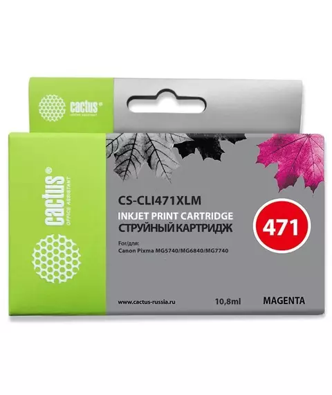 Картридж струйный Cactus CS-CLI471XLM пурпурный 10.8мл, совместим с Canon TS5040, MG5740, MG6840, MG7740, с чипом