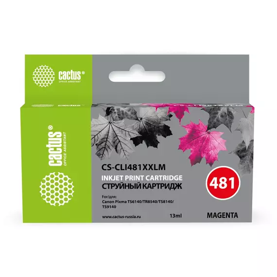 Картридж струйный Cactus CS-CLI481XXLM пурпурный 13мл, для Canon Pixma TR7540/TR8540/TS6140/TS8140, с чипом