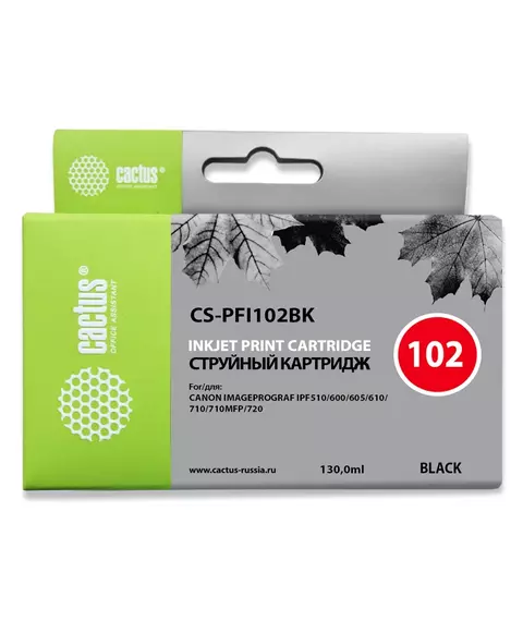 Картридж струйный Cactus CS-PFI102BK PFI-102 BK черный 130мл для Canon iPF500 iPF600 iPF700 MFP M40 iPF765 LP17 LP24 с чипом