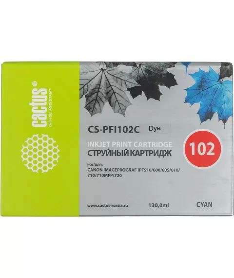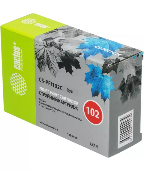 Картридж струйный Cactus CS-PFI102C синий 130мл для Canon IP iPF500/iPF600/iPF700 MFP M40/iPF765 LP17/LP24 с чипом
