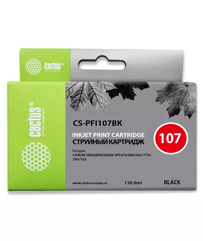 Картридж струйный Cactus CS-PFI107BK PFI-107 BK черный 130мл для Canon IP iPF670/iPF680/iPF685/iPF770/iPF780/iPF785 с чипом