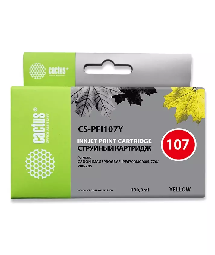 Картридж струйный Cactus CS-PFI107Y PFI-107 Y желтый 130мл для Canon IP iPF670/iPF680/iPF685/iPF770/iPF780/iPF785 с чипом