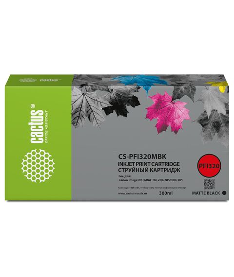 Картридж струйный Cactus CS-PFI320MBK аналог PFI-320MBK черный матовый (300мл) для Canon imagePROGRAF TM-200/TM-200 MFP L24ei/TM-205/TM-300