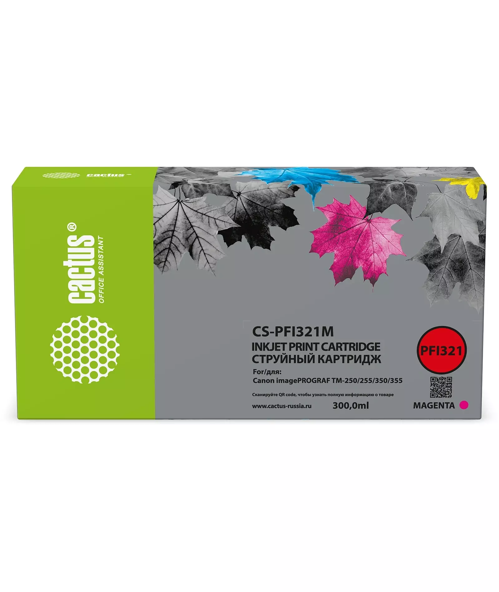 Картридж струйный пигментный Cactus CS-PFI321M пурпурный 300мл для Canon imagePROGRAF TM-250/255/350/355 с чипом