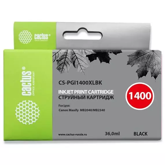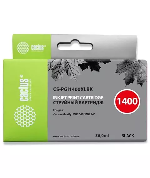 Картридж струйный Cactus CS-PGI1400XLBK черный пигментный 36мл для Canon MB2050/MB2350/MB2040/MB2340 с чипом