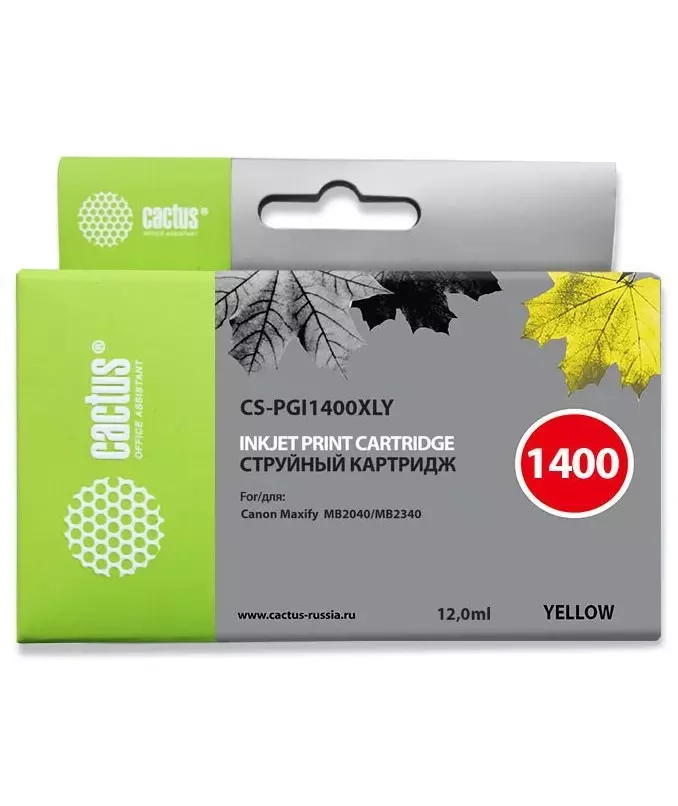 Картридж струйный Cactus CS-PGI1400XLY желтый пигментный 12мл для Canon MB2050/MB2350/MB2040/MB2340 с чипом