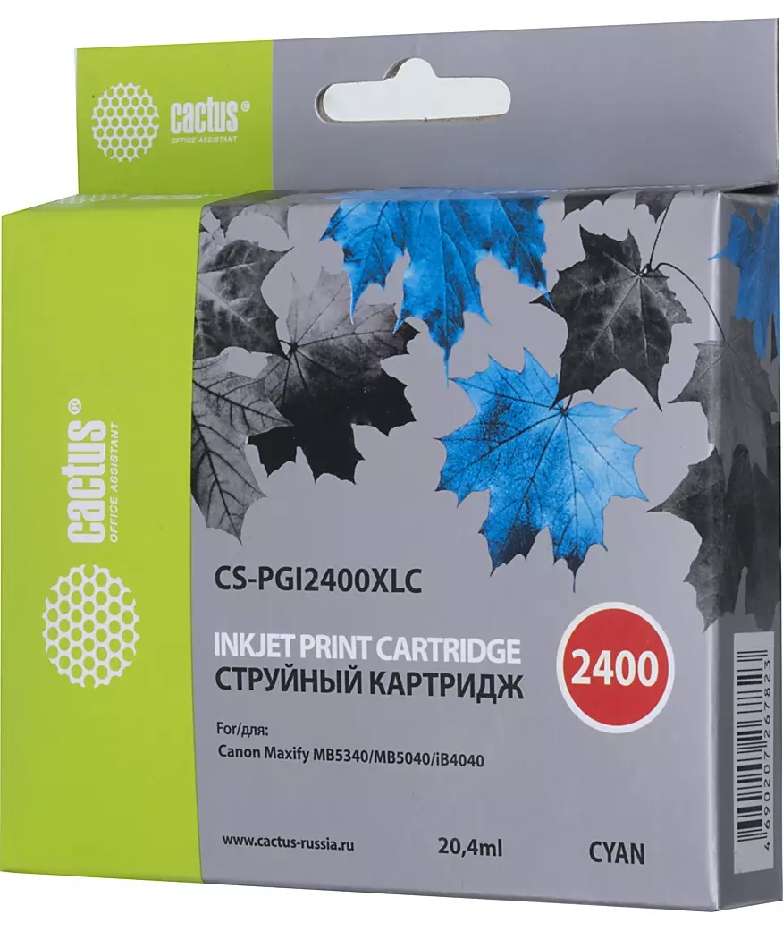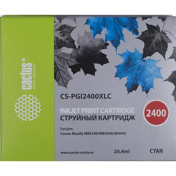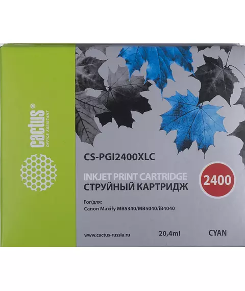 Картридж струйный Cactus CS-PGI2400XLC голубой пигм. 20.4мл для Canon MAXIFY iB4040/ МВ5040/ МВ5340 с чипом