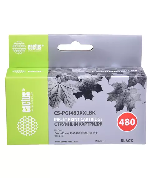 Картридж струйный Cactus CS-PGI480XXLBK черный пигментный 24.4мл для Canon Pixma TR7540/TR8540/TS6140/TS8140 с чипом