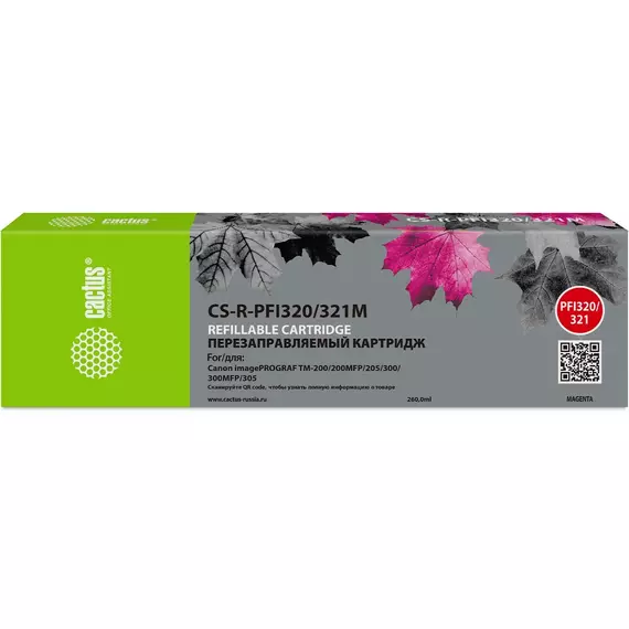 Картридж перезаправляемый струйный Cactus CS-R-PFI320/321M пурпурный 260мл для Canon imagePROGRAF TM-200/200MFP/205/300/300MFP/305 без чипа