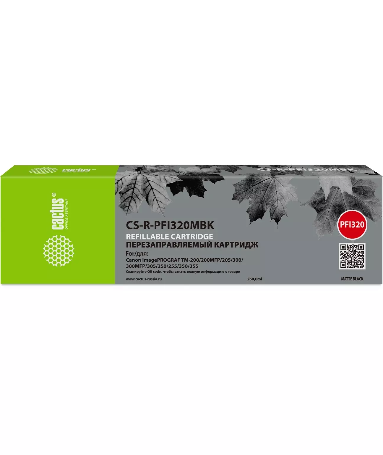 Картридж перезаправляемый струйный Cactus CS-R-PFI320MBK черный матовый (260мл) для Canon imagePROGRAF TM-200/200MFP/205/300/300MFP/ 305/250/255/350/355 без чипа