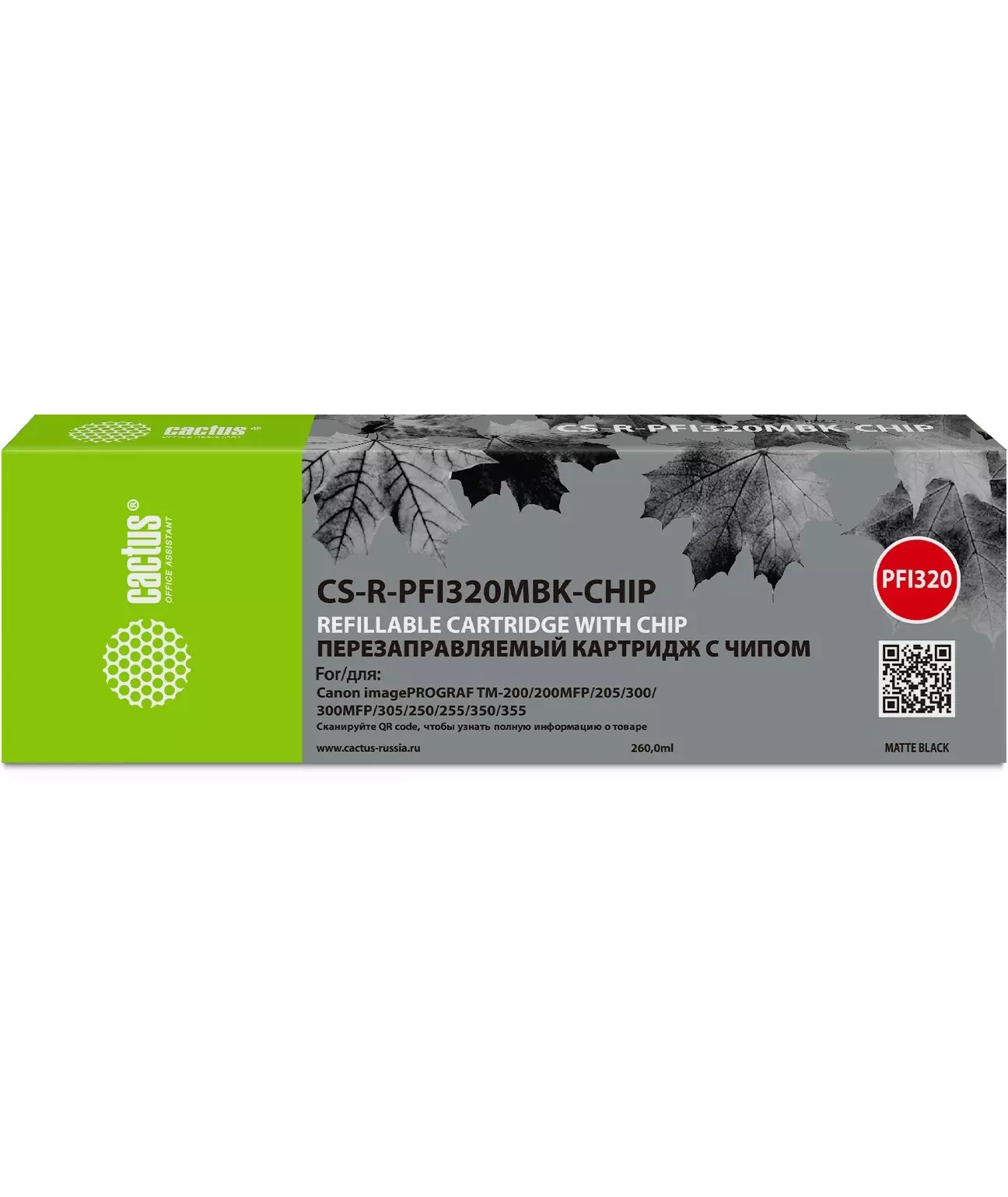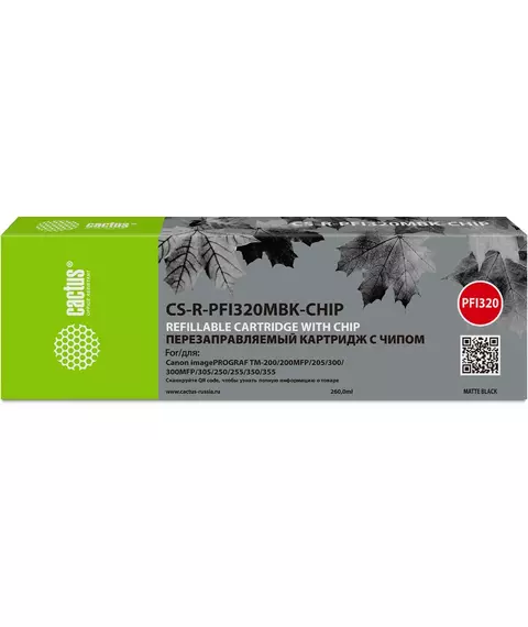 Картридж перезаправляемый струйный Cactus CS-R-PFI320MBK-CHIP PFI-320 черный матовый (260мл) для Canon imagePROGRAF TM-200/200MFP/205/300/300MFP/305/250/255/350/355 с чипом