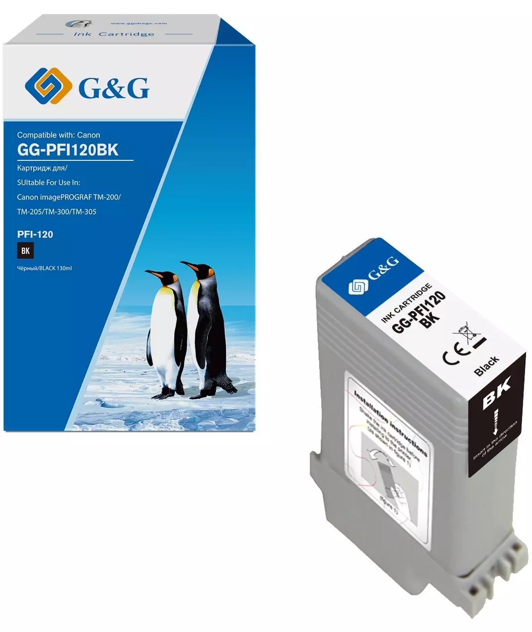 Картридж струйный G&G GG-PFI120BK PFI-120 BK черный пигментный (130мл) для Canon imagePROGRAF TM-200/205/300/305/250