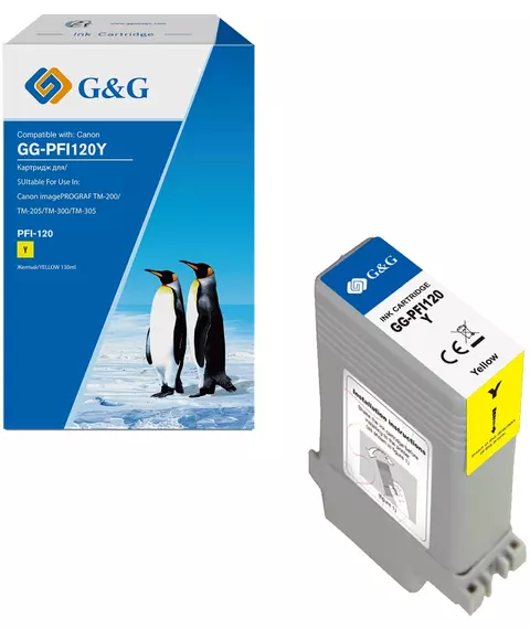 Картридж струйный G&G GG-PFI120Y PFI-120 Y желт.пигм. (130мл) для Canon imagePROGRAF TM-200/205/300/305/250