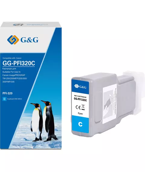 Картридж струйный G&G GG-PFI320C голубой (300мл) для Canon imagePrograf TM-200/200MFP/205/300/300MFP/305