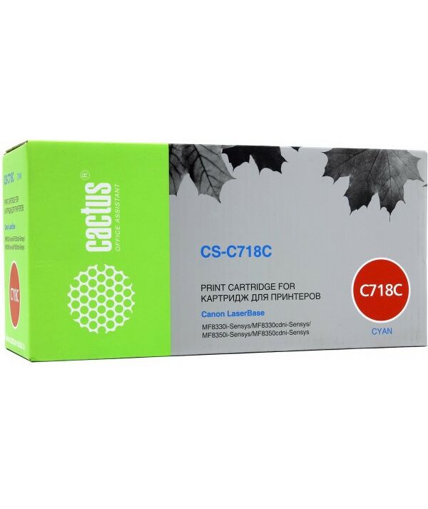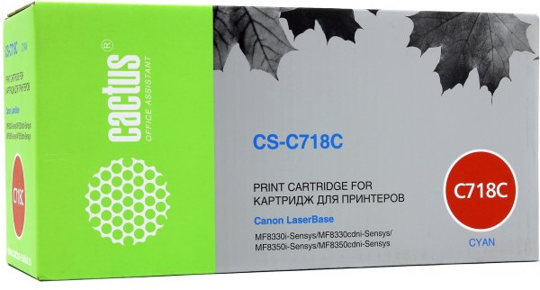 Описание Картридж Cactus CS-C718C для Canon i-Sensys MF8330/MF8340/MF8350/MF8360/ MF8540/MF8580/LBP7200/7210/7660/7680, голубой (2900стр.)