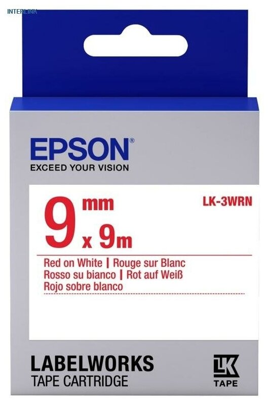 Картридж Epson C53S653008 лента 9 мм, красный текст на белом фоне, 9 метров