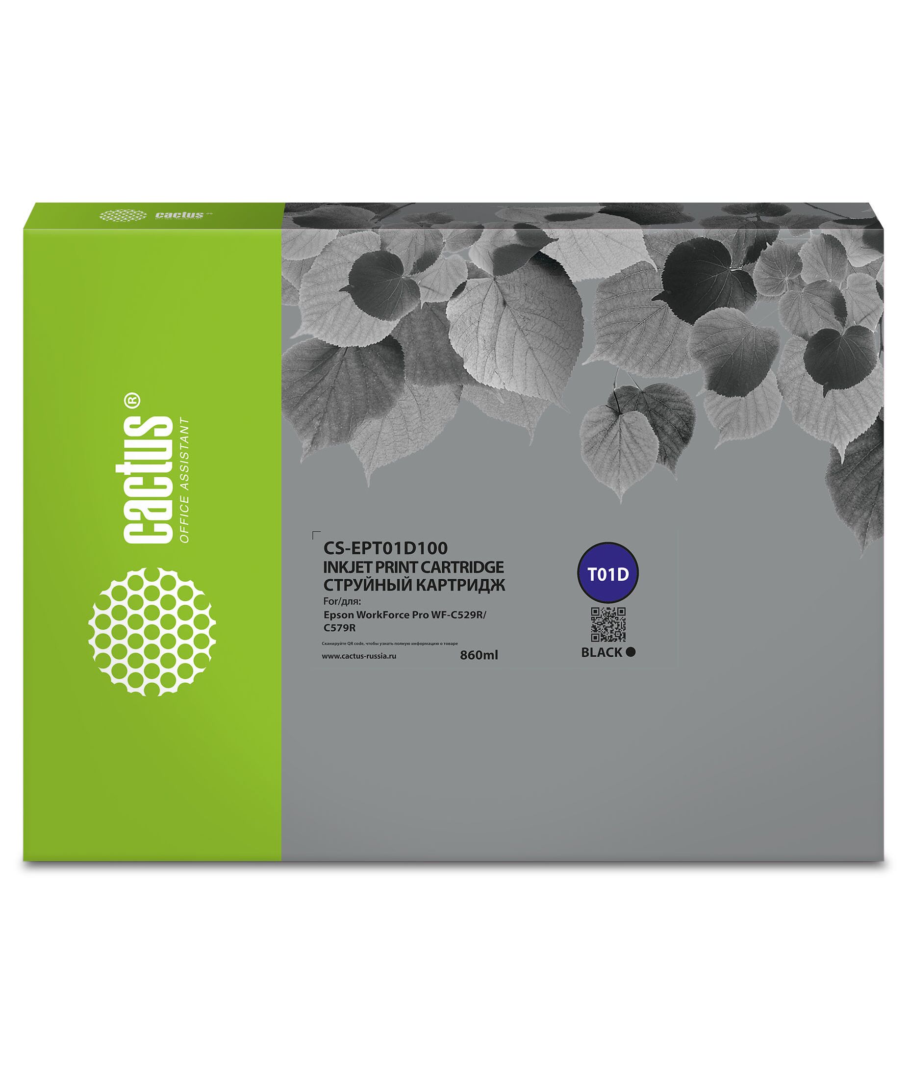 Картридж струйный Cactus CS-EPT01D100 T01D1 черный (860мл) для Epson WorkForce Pro WF-C529R/C529RDTW/C529RDTW EPP
