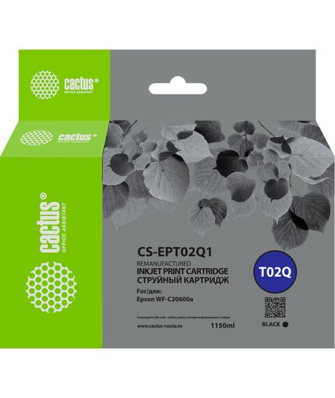 Картридж струйный Cactus CS-EPT02Q1 T02Q черный (1084мл) для Epson WorkForce Enterprise WF-C20600D4TW
