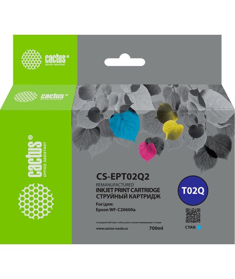Картридж струйный Cactus CS-EPT02Q2 T02Q голубой (660мл) для Epson WorkForce Enterprise WF-C20600D4TW
